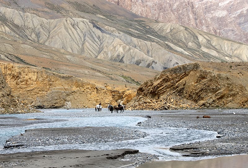 Trekking through riverside pastures to the base of the Kyamar La (4615 m)