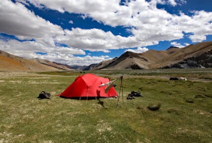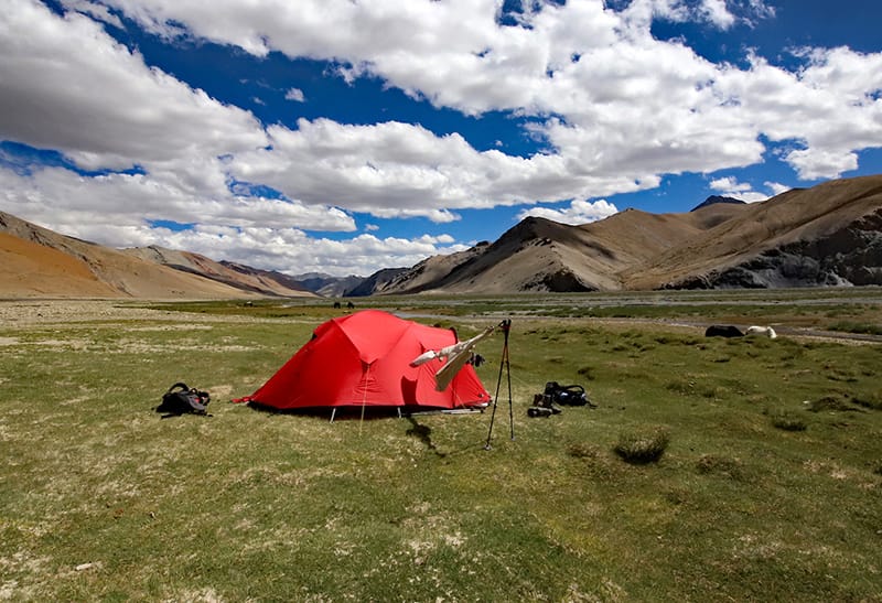The day starts out with a gradual but quite tough climb to the Kyamar La (5130 m), which takes a little over 2 hours from camp. On the way we are likely to see hares, marmots and picas, as well as the elusive Himalayan blue sheep. There are spectacular views westwards to the Zanskar range of mountains and also, looking north and east, wide-ranging panoramas across the high plateau of the Chang Tang. We descend on grassy slopes for an hour to Tiri Doksa, a temporary shepherding settlement and then continue to a stream where we take lunch. After lunch, a trek of an hour or so takes us across the Mandalchan La (5216 m). We reach our camp at Tisaling (5046 m).